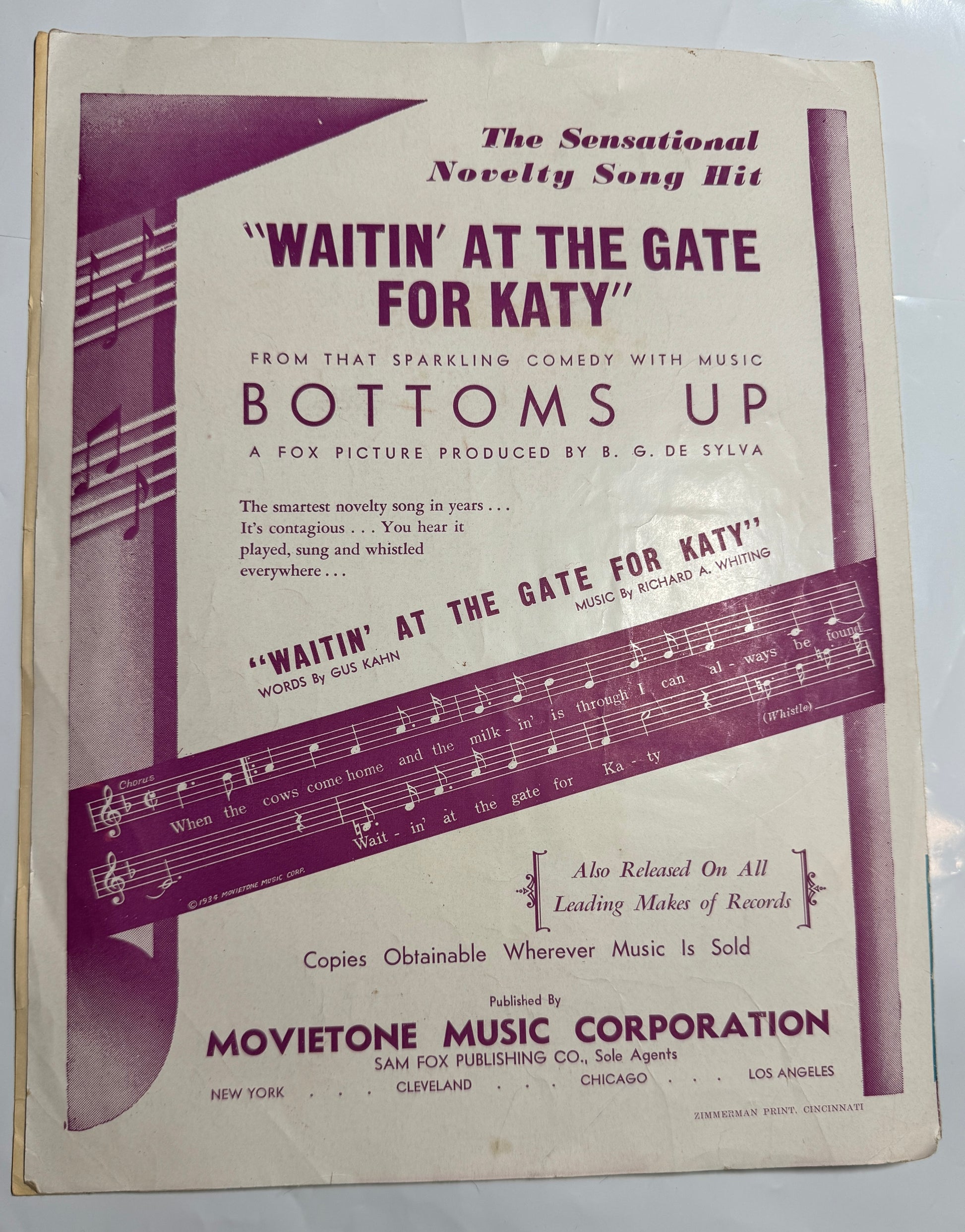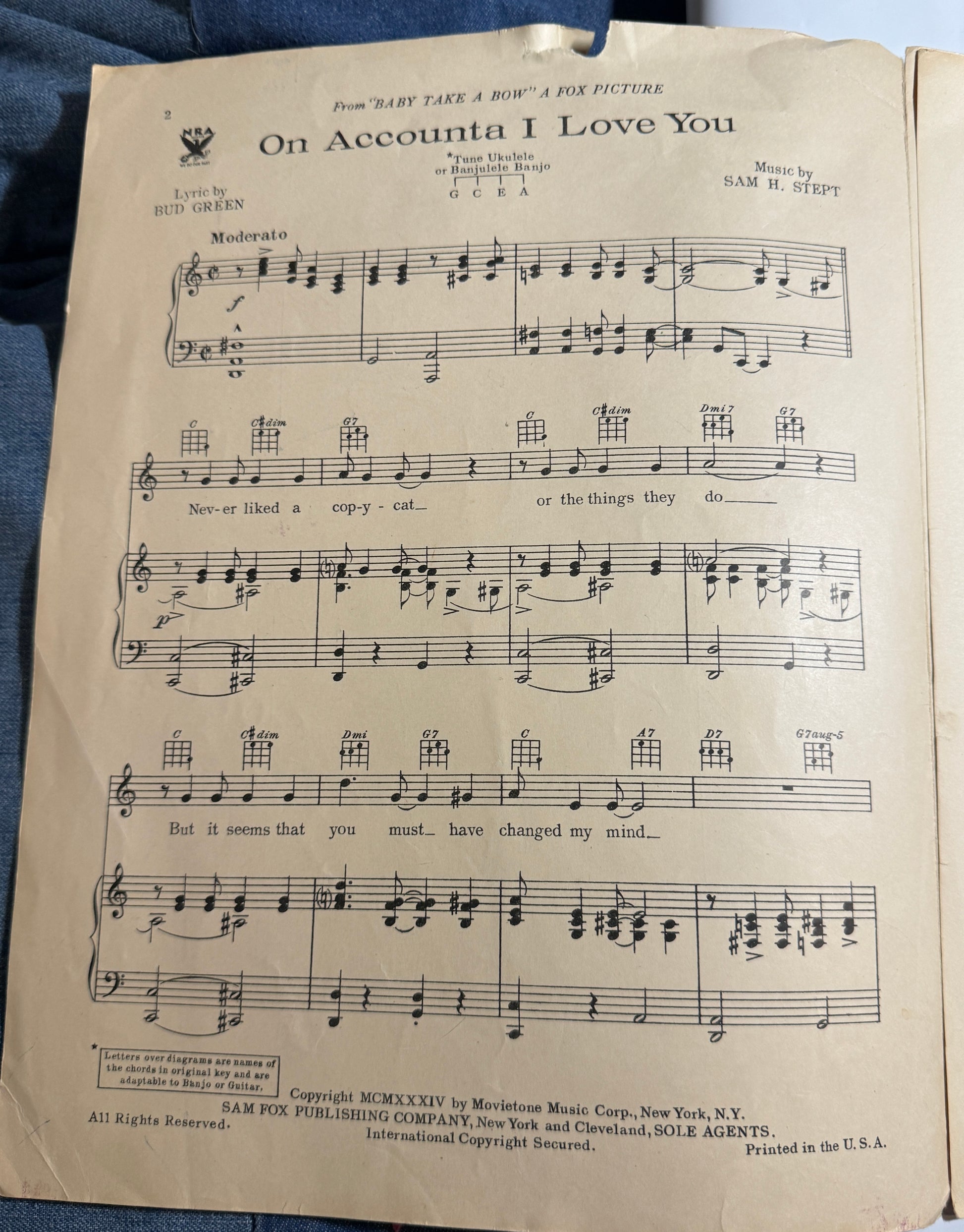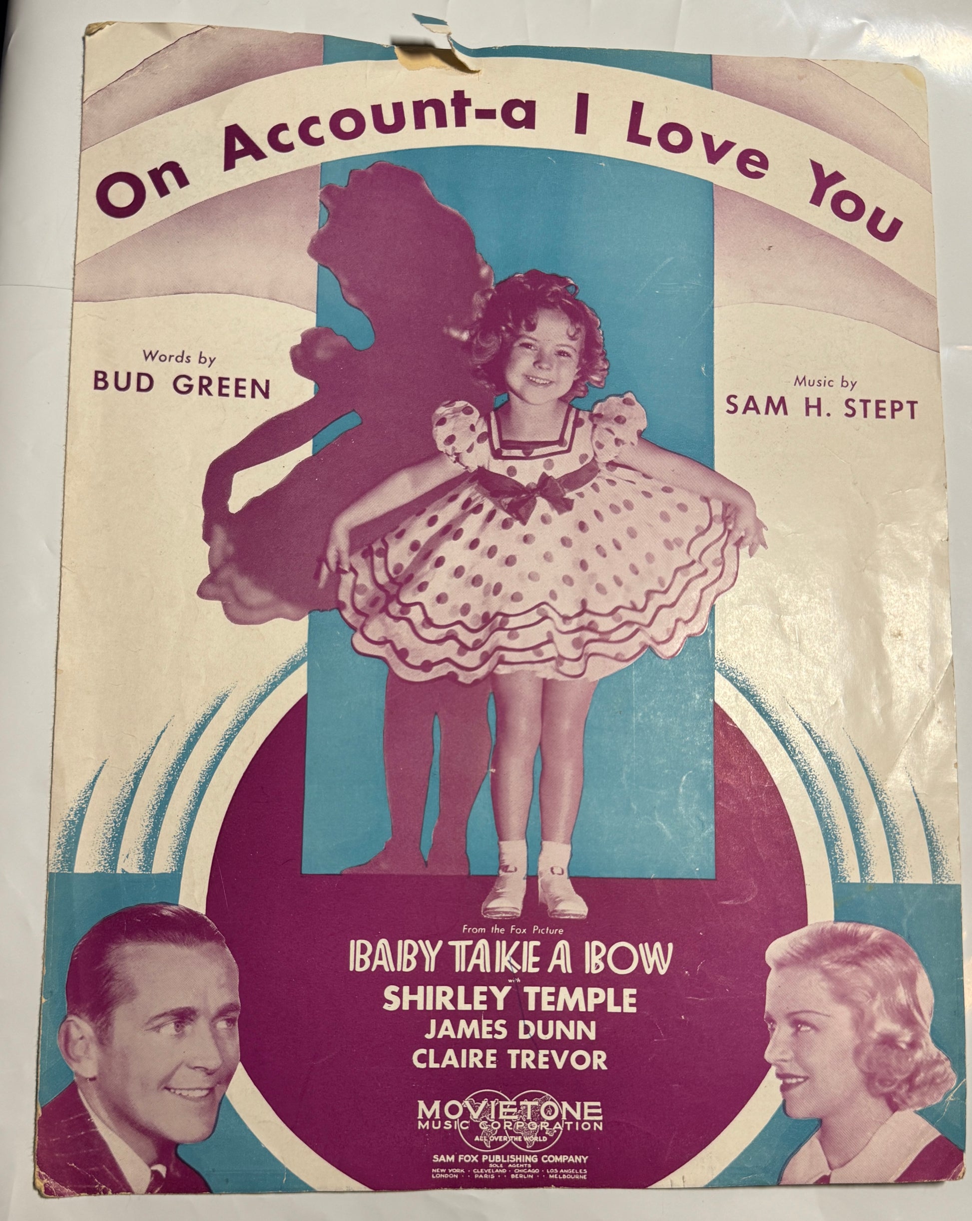On Account - A I love you - Shirley Temple by Bud Green and Sam Stept From the Fox Picture Baby Take A Bow 1934 Vintage