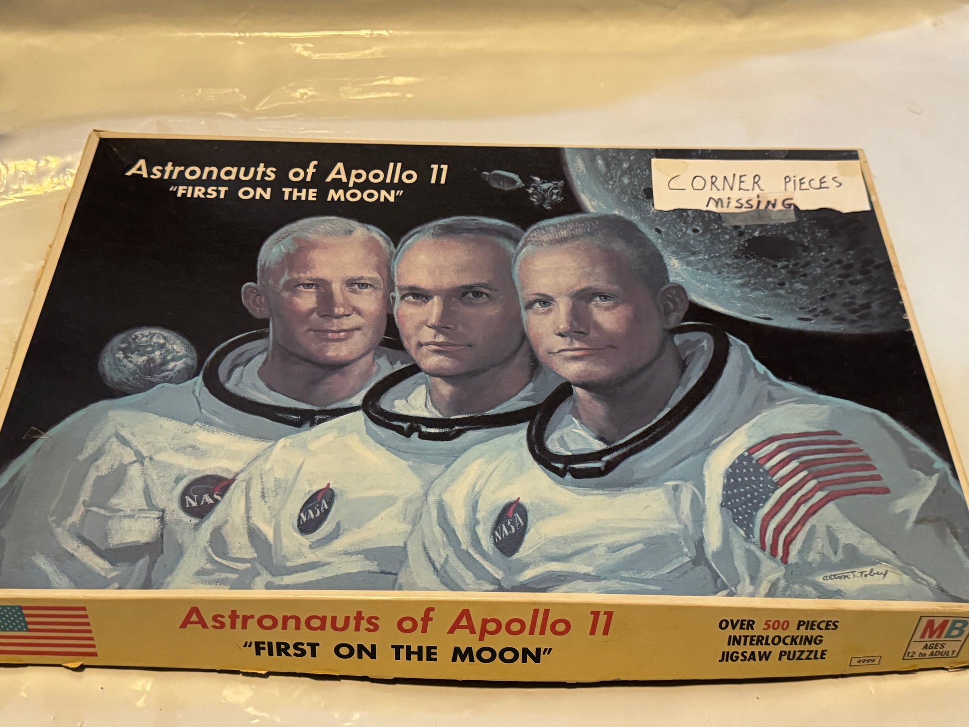 Astronauts of Apollo 11 First on the Moon Puzzle. Conner pieces Missing