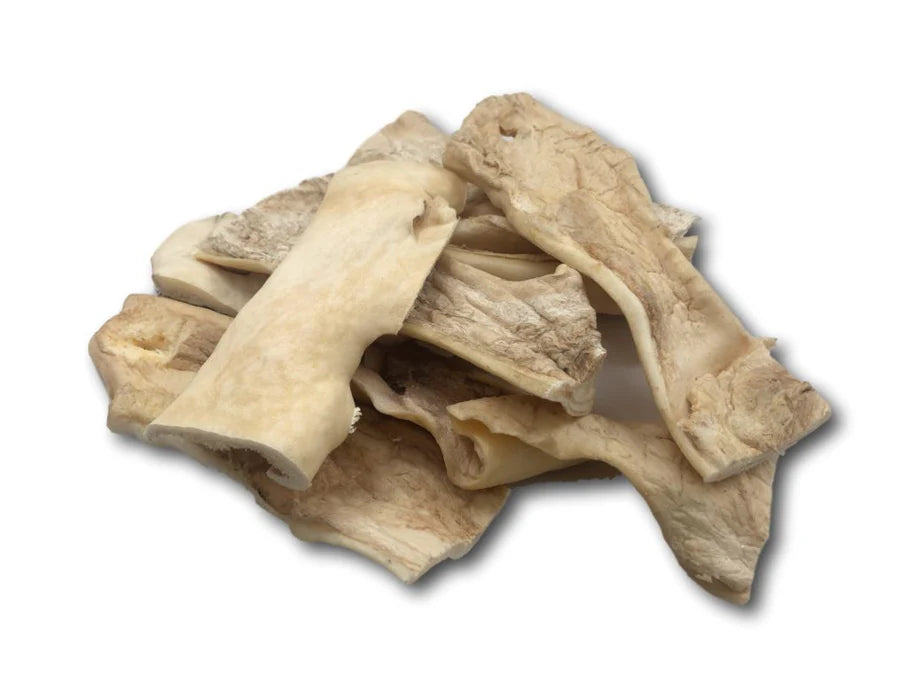 These Beef Cheek Chips are more curled and some are strips. They are bagged in 1LB bags. Beef Cheek Chips look like Rawhide, but are much more digestible. 100% natural pieces of Beef Cheek is a softer hide than regular hide.