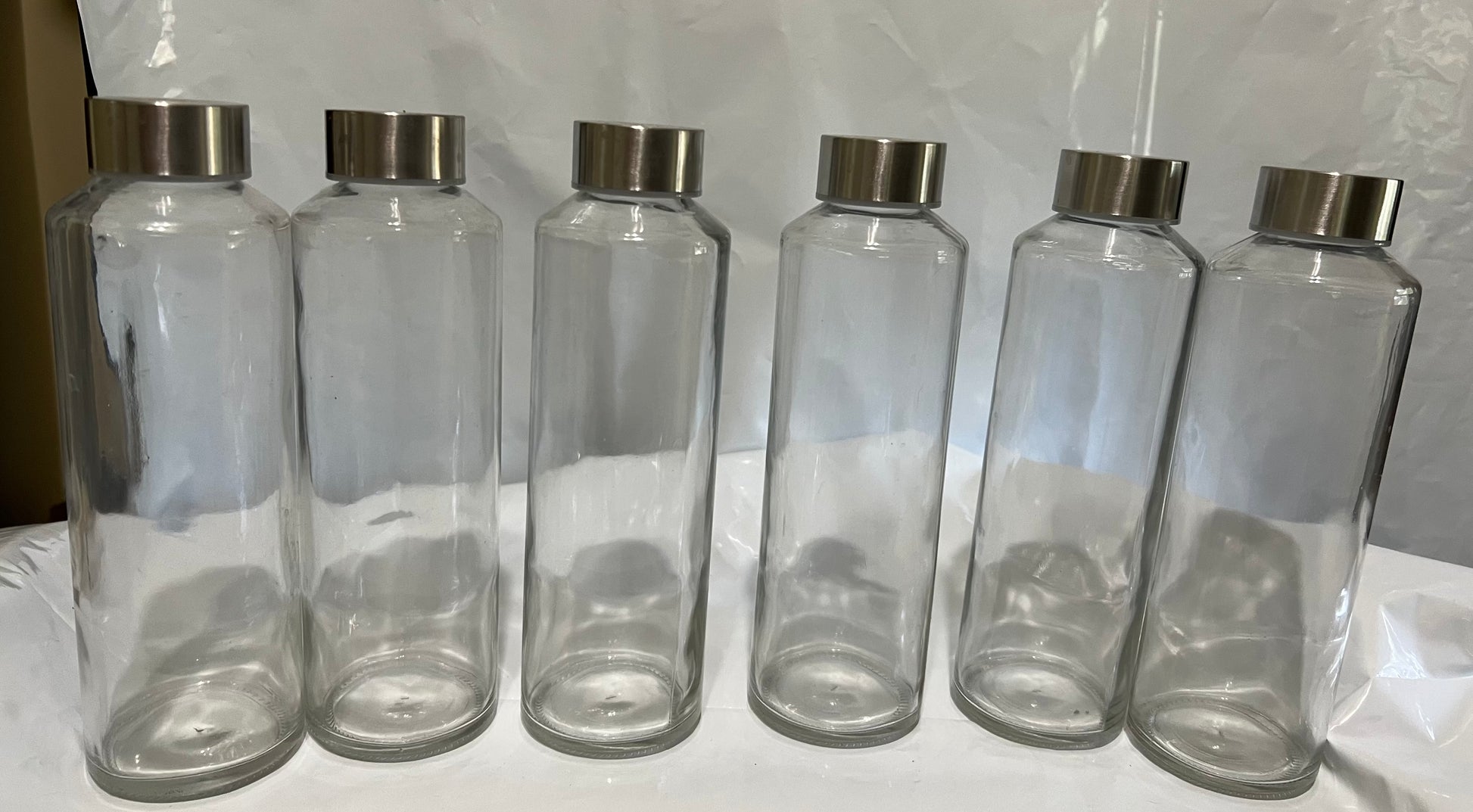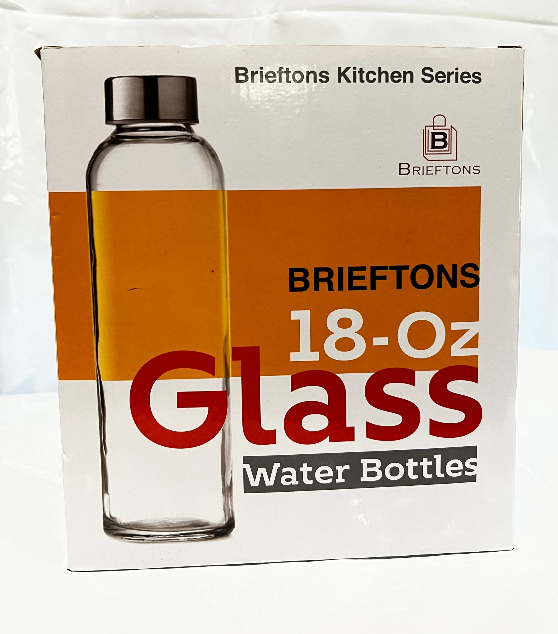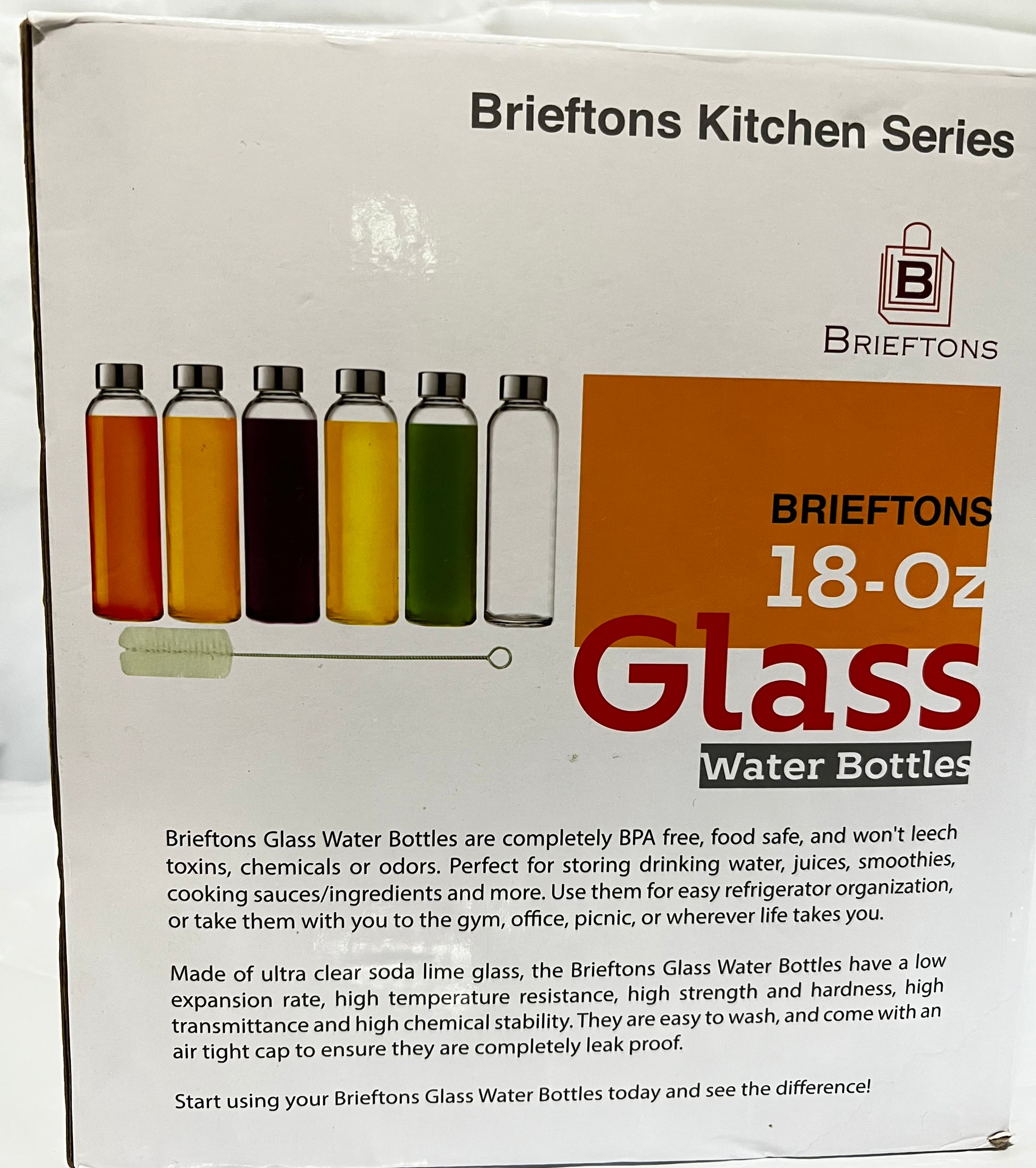 Brieftons 6 Pack of 18 Oz Glass Bottles with Lids Reusable Refillable Water Bottle for Juicing
