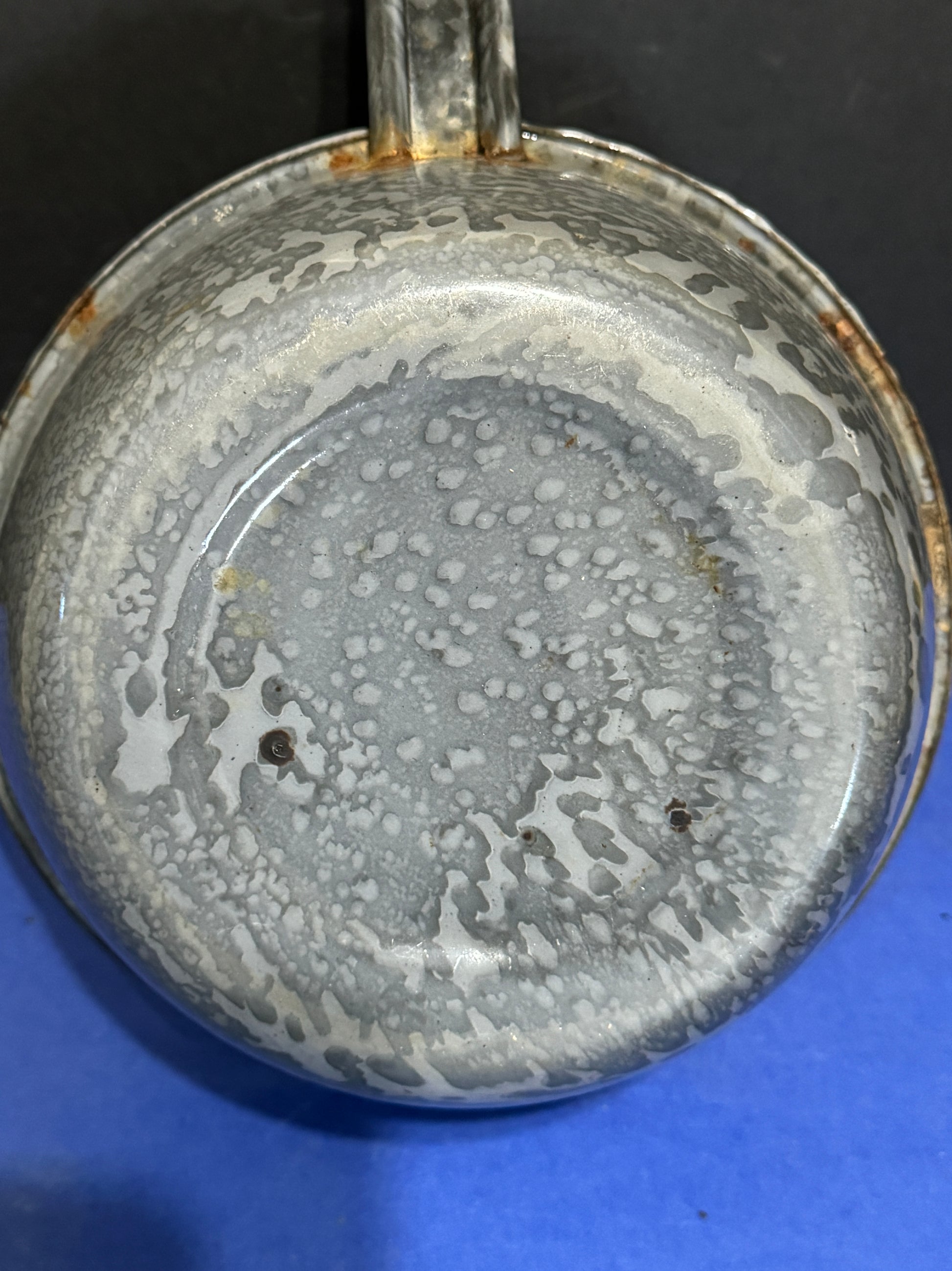 Gray Mottled Enamelware Graniteware 12 in Pot Pan with Handle - VINTAGE