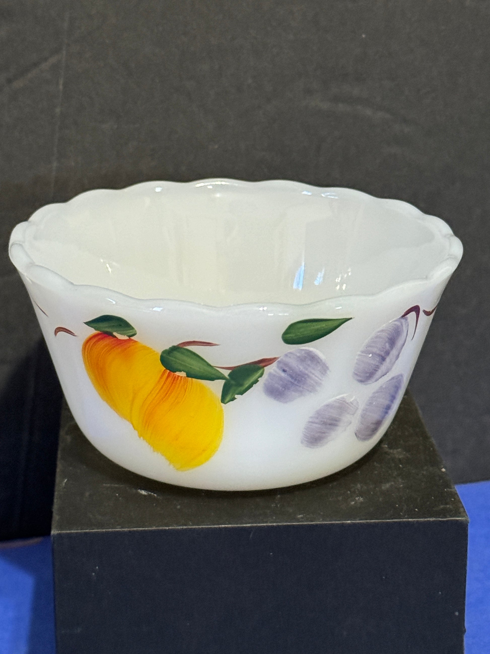 Hand Painted Fruit Custard Cup Anchor Hocking Fire King - Vintage