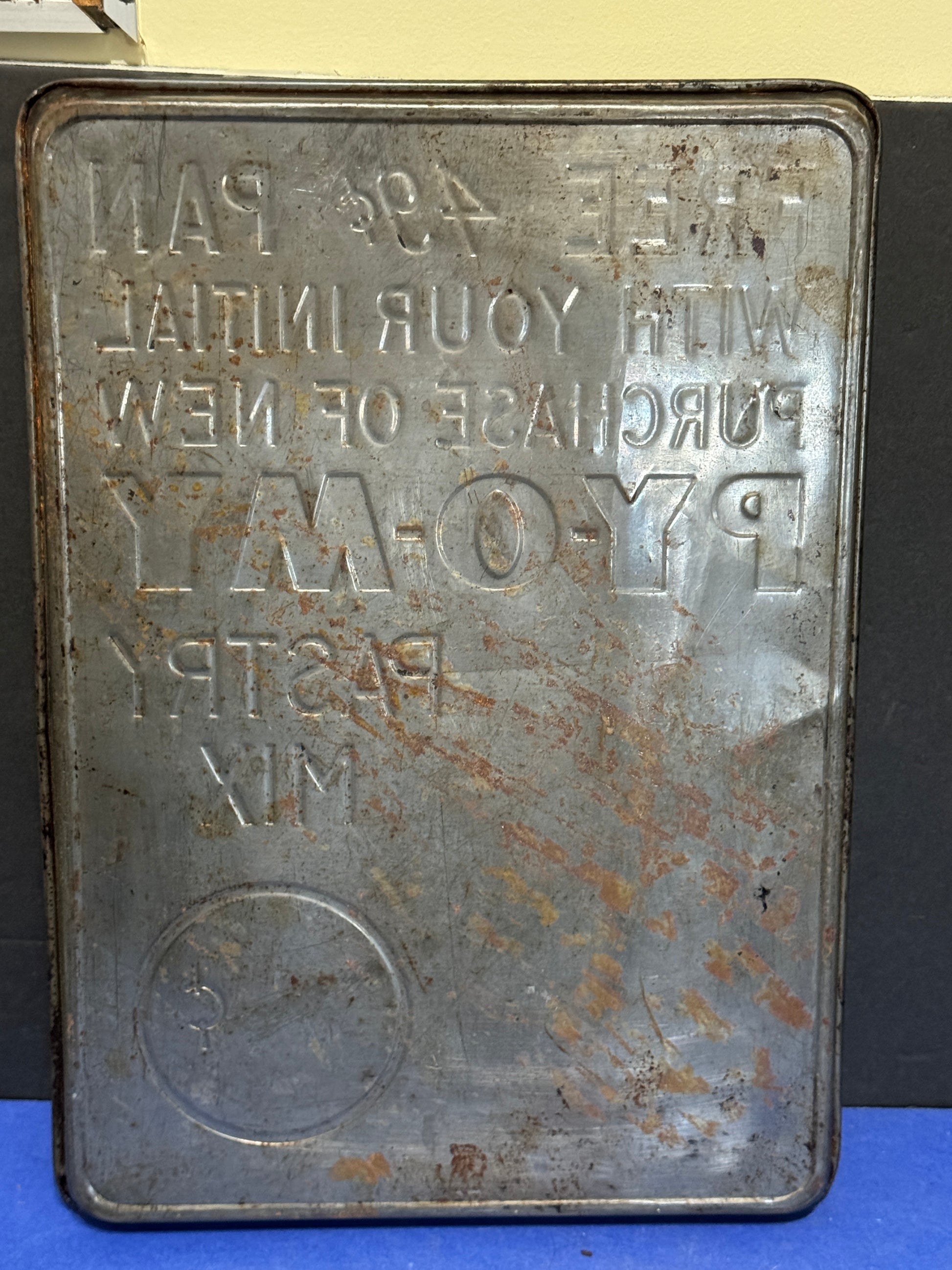 PY-O-My Pastry Mix Free 49 Cent Pan with Purchase Give A Way Used - VINTAGE It measures 14" by 10".