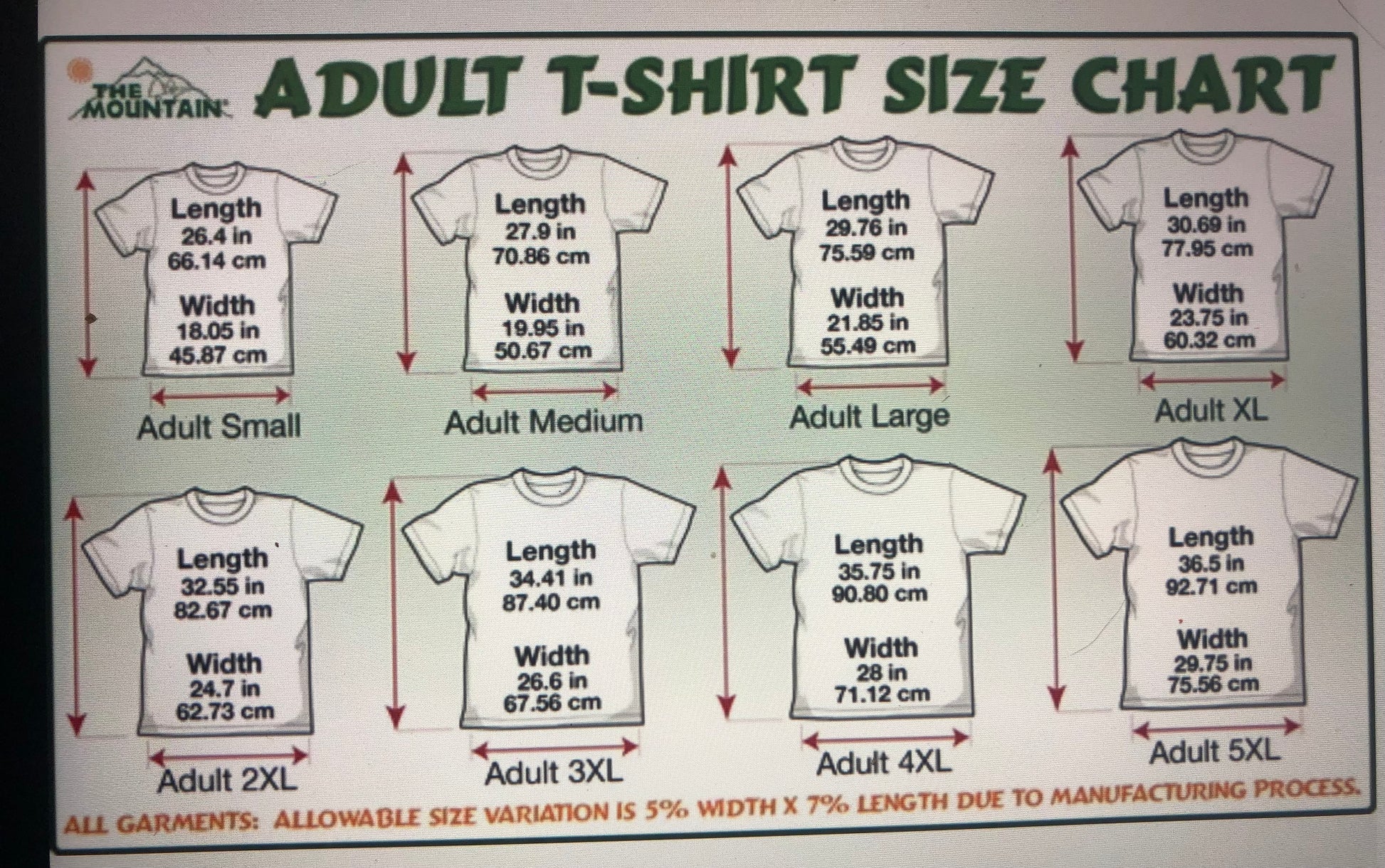 Here at The Mountain, we are pioneers of water-based ink and have perfected its use to create photo-realistic imagery that is not attainable by other screen printers. Your Customers will feel comfortable inside and out in our 100% cotton, eco-friendly tees. Hand-dyed in Keene, NH with organic dyes, so each tee is unique, and printed with soft, non-toxic water-based inks. Pre-Shrunk, medium wieght 100% Cotton. Featuring a relaxed, classic fit, our Adult cotton tees are versatile and durable with reinforced double-stitching on all seams.